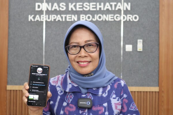 Kepala Dinas Kesehatan Bojonegoro Ninik Susmiyati menunjukkan WASIAT, aplikasi untuk memudahkan pasien periksa di RSUD/Foto: Diba Bojonegorokab.go.id – Kemudahan dalam penggunaan WASIAT (WhatsApp...